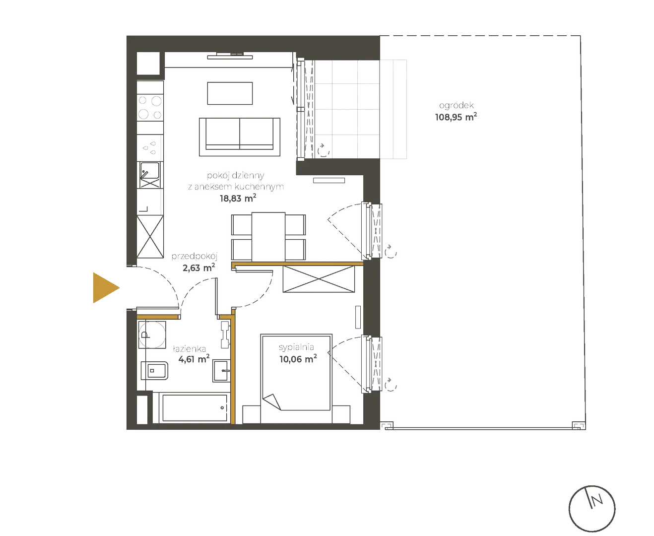 - Pokój dzienny z aneksem kuchennym 18.83 m²