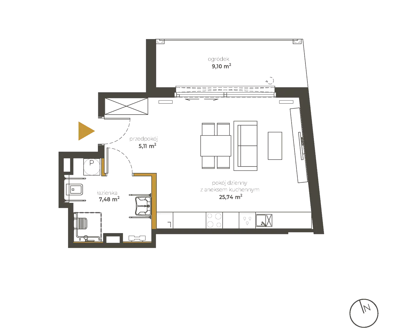 - Pokój dzienny z aneksem kuchennym 25.74 m²