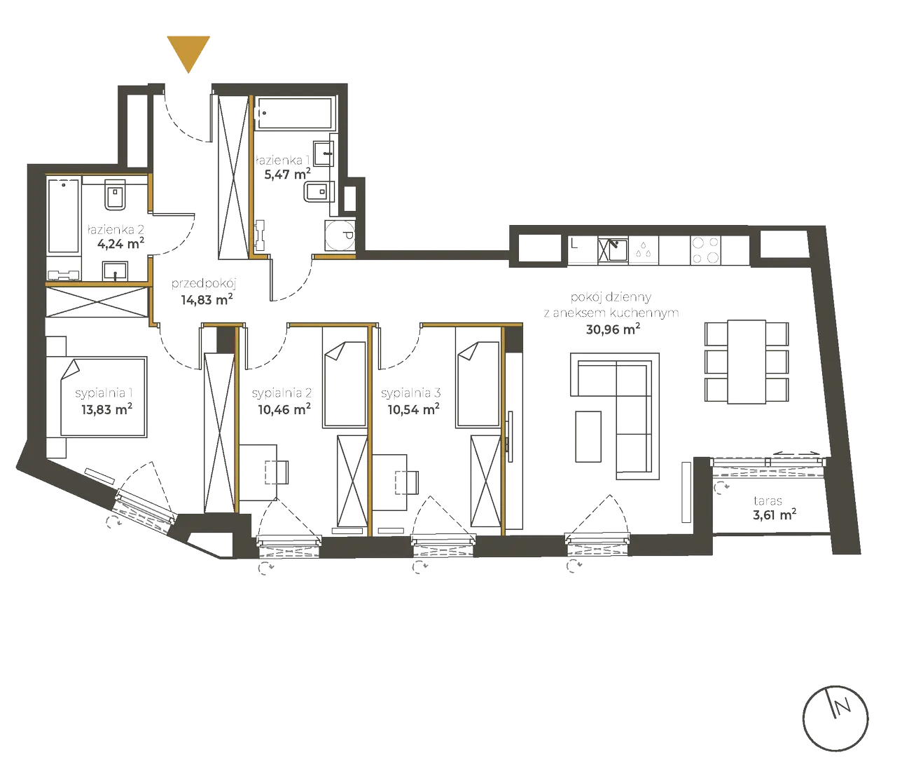 - Pokój dzienny z aneksem kuchennym 30.96 m²