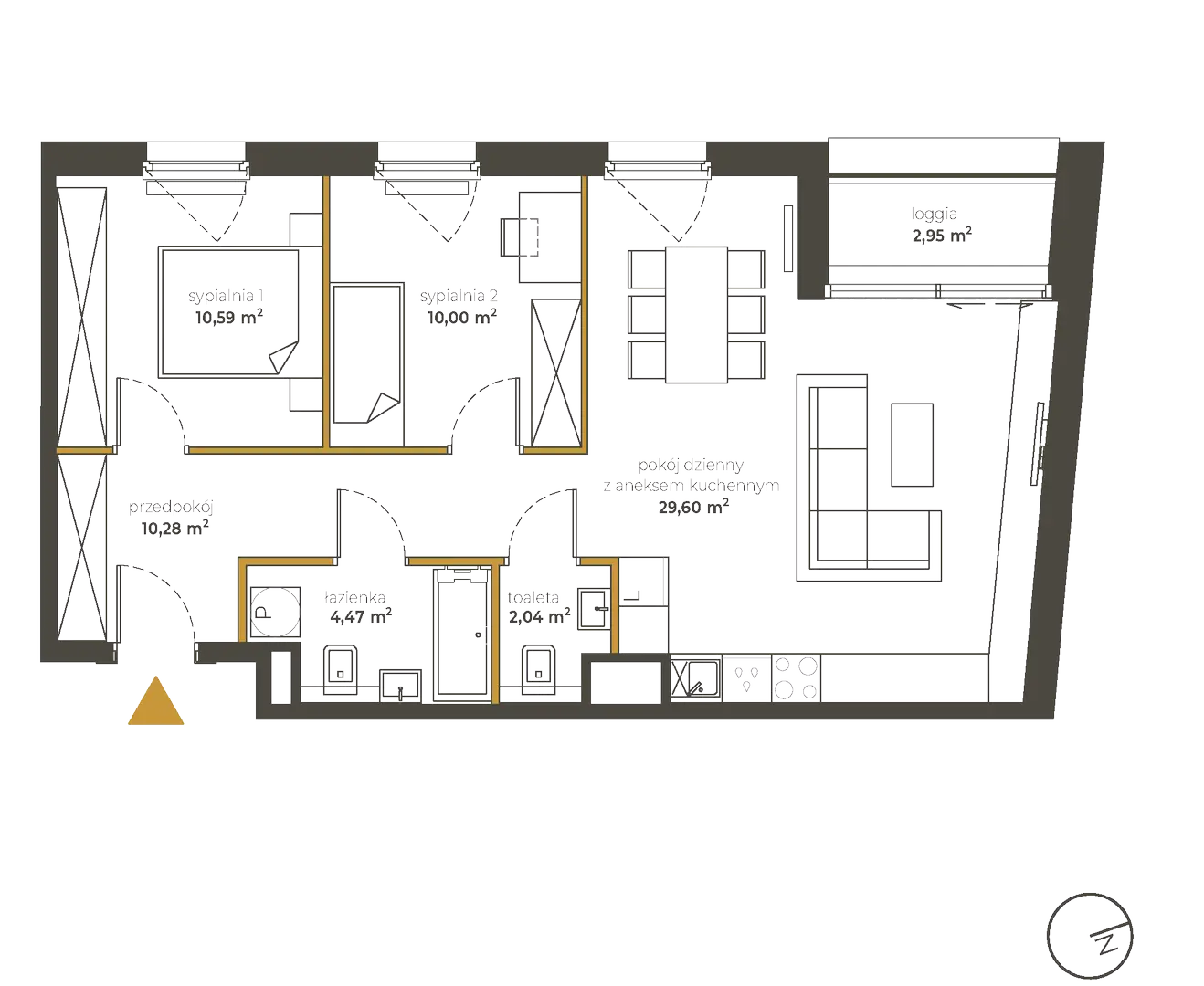 - Pokój dzienny z aneksem kuchennym 29.6 m²