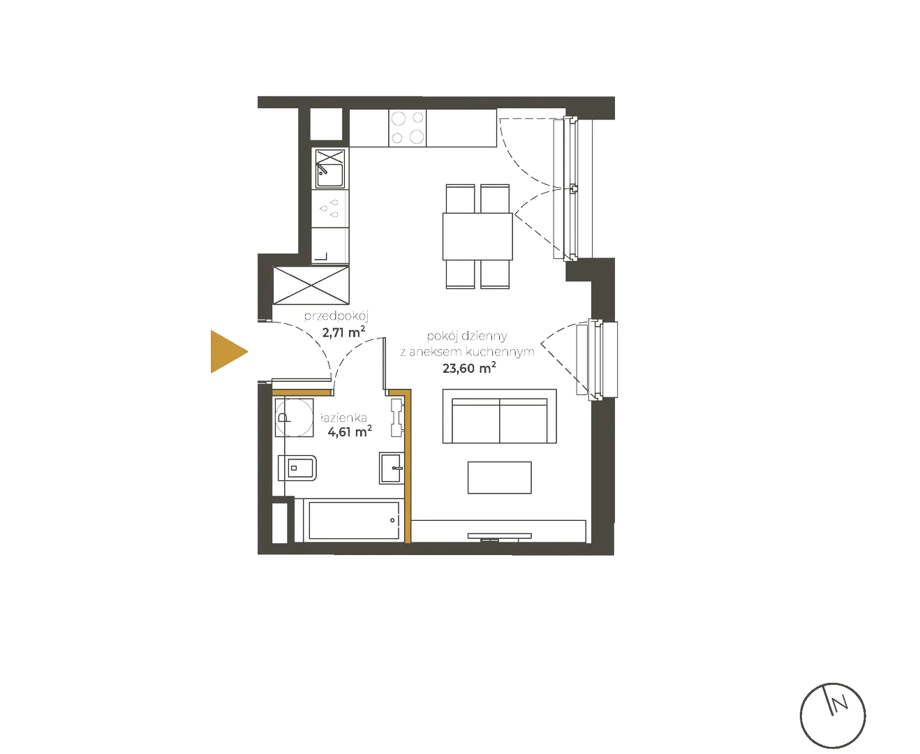 - Pokój dzienny z aneksem kuchennym 23.6 m²