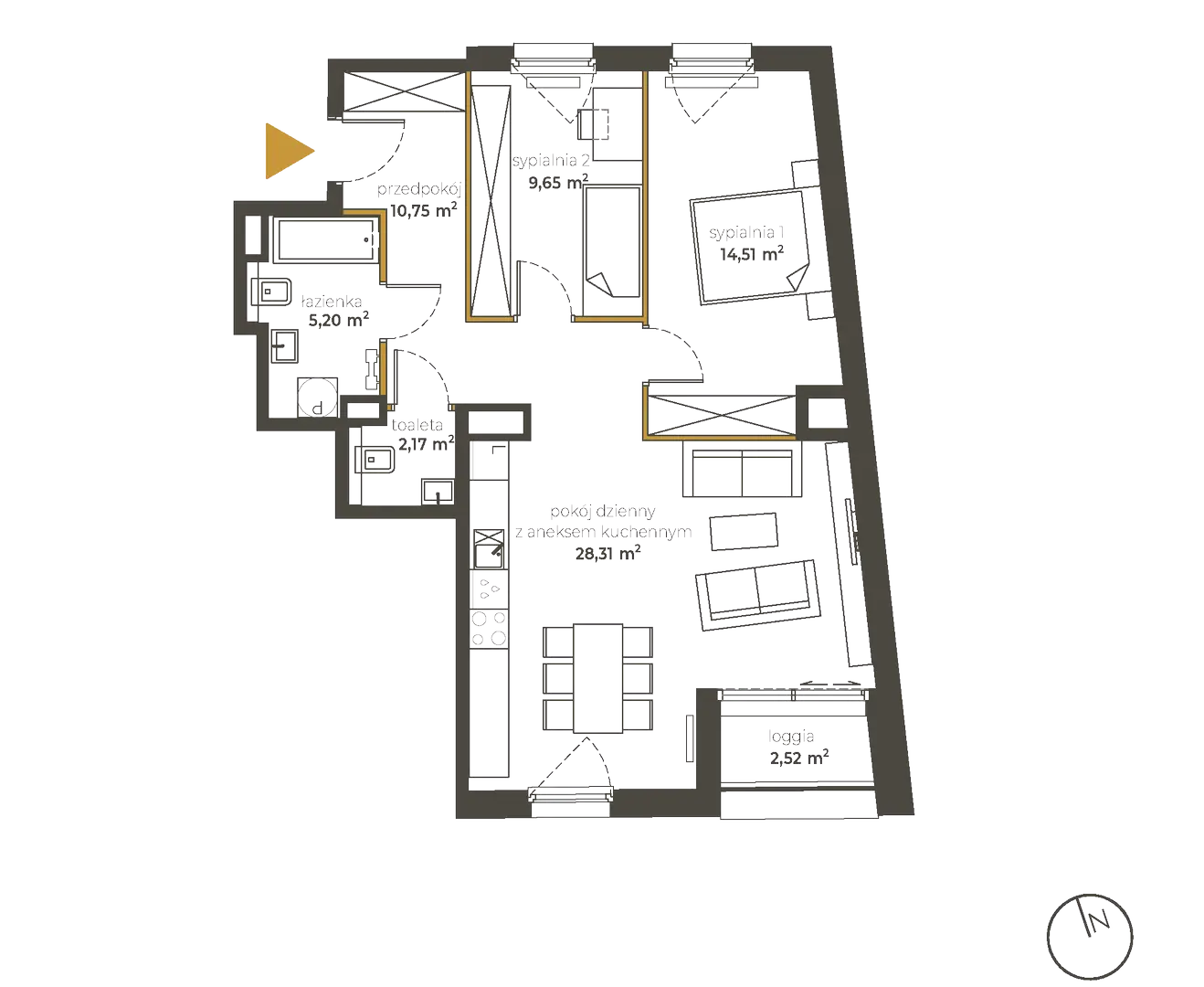 - Pokój dzienny z aneksem kuchennym 28.31 m²